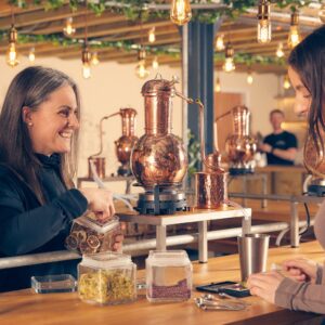 Become a Distiller for the Day, working with your own mini copper still and our ever-growing botanical wall to design, distil and bottle your own spirit to take home.